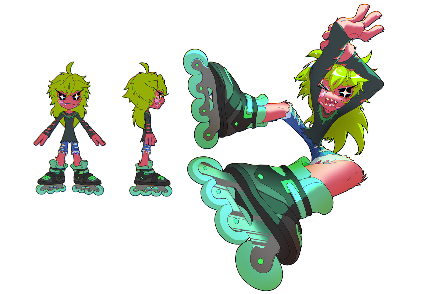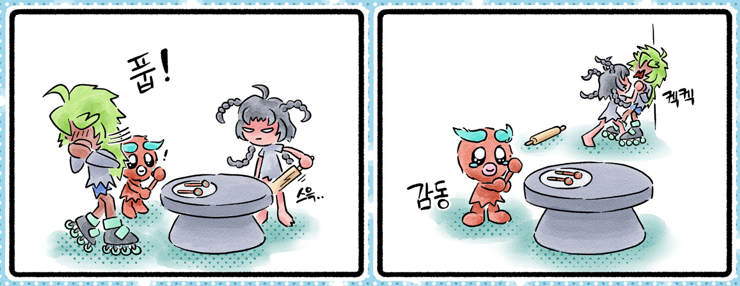 両足にはいつもインラインスケートを履き、何事にも戦闘的な熱血少年「パク」です。プライドが高く気難しい一方で、失敗を連発してすぐに顔を赤らめてしまう素直な一面があり、つい目で追ってしまう少年です。